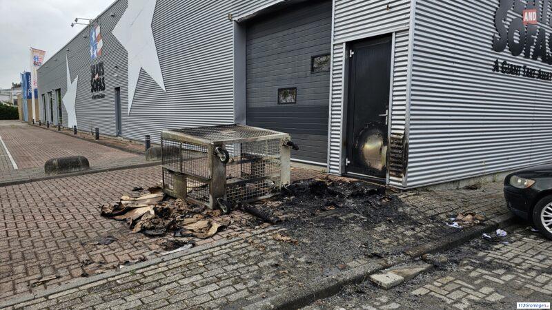 Groningen- Bij de goederen ingang van de Seats and Sofas heeft donderdagavond een papiercontainer in