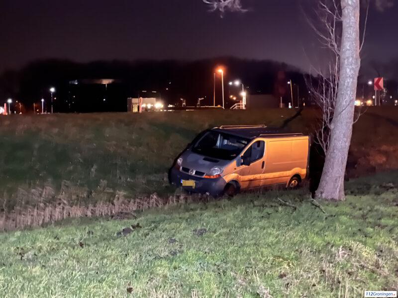 Farmsum – Op de N991 bij Farmsum is donderdagavond een bestelbusje van de weg geraakt.