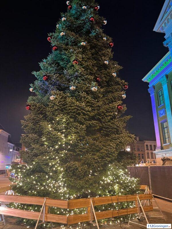 Groningen – Vandalen hebben de verlichting van de kerstboom op de Grote Markt in de