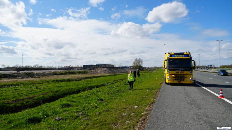 Groningen – Op de A7 tussen Groningen en Hoogezand is een aanhanger in de sloot