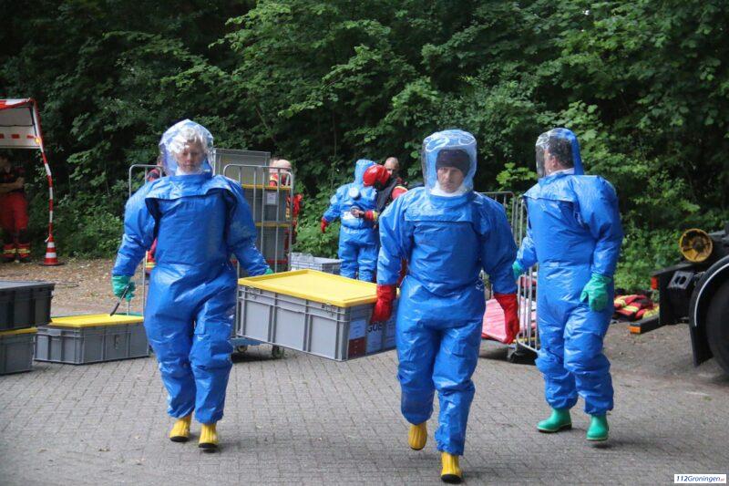 Warffum – Dinsdagavond is een CBRN oefening gehouden bij zwembad de Breede, hier werd een