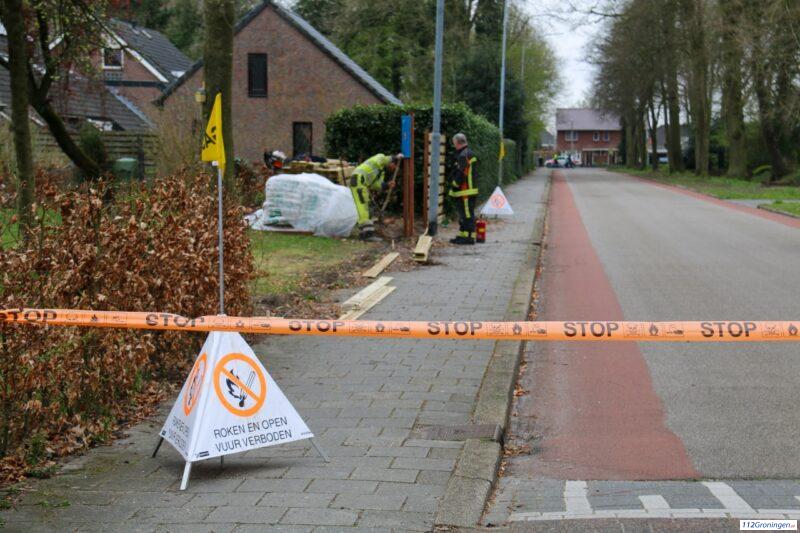 Fors gaslek aan de Vosseweg in Winschoten