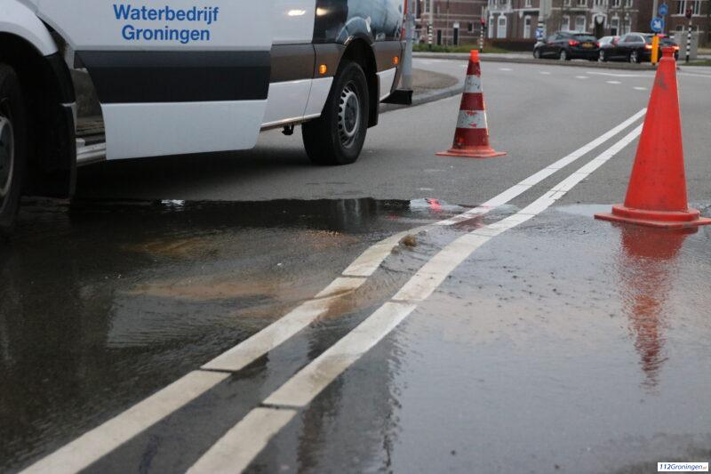 Groningen- Op de Petrus Campersingel is een waterleiding gesprongen onder het asfalt. Hierdoor is het