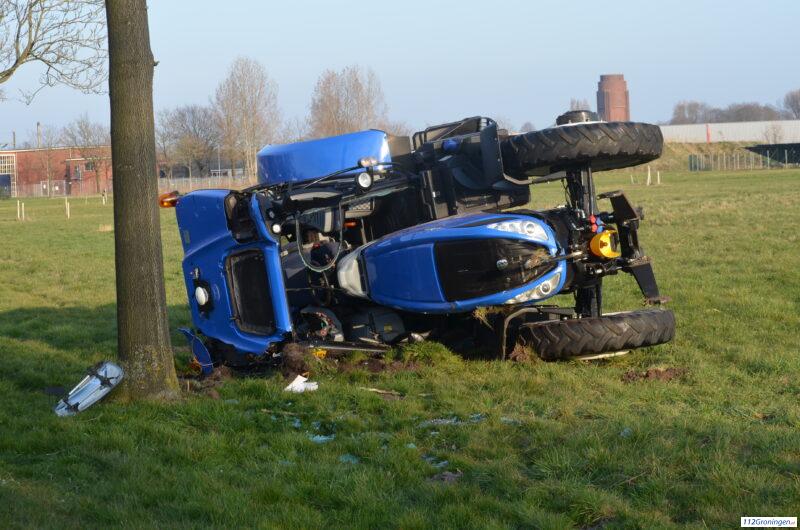 Trekker in Stadskanaal kantelt, bestuurder gewond
