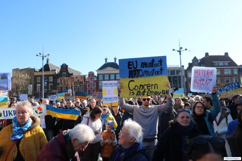 Groningen – De vredesdemonstratie voor Oekraïne op de Grote Markt in Groningen heeft zondagmiddag veel