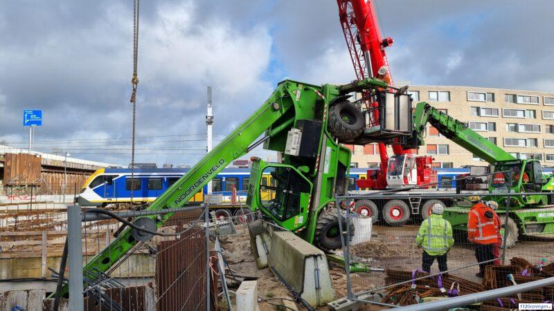 Verreiker gekanteld op de Helperzoom tijdens werkzaamheden nieuwe tunnel (Video)