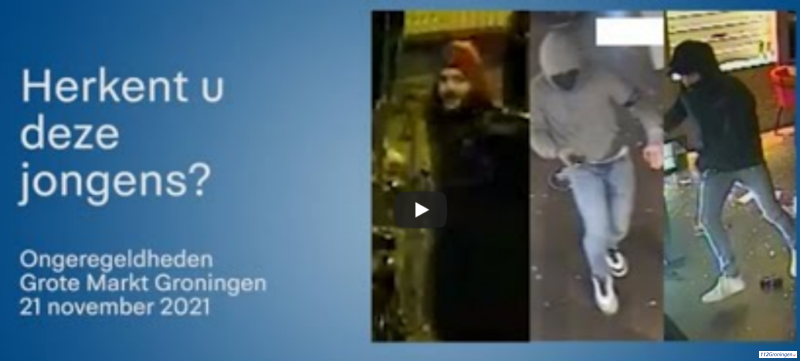 Politie deelt beelden van drie verdachten van novemberrellen in Groningen (Video)
