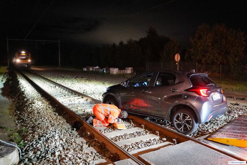 Duitse automobilist vast op spoor bij spoorwegovergang in Tynaarlo