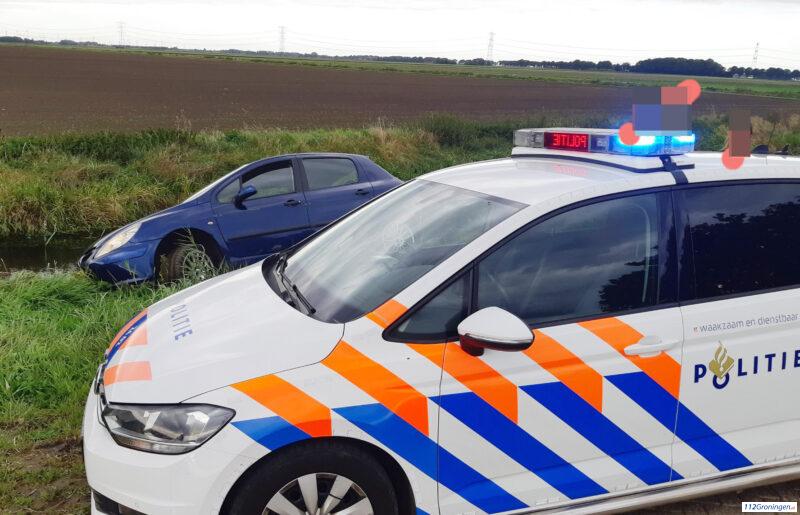 Auto belandt in sloot na aanrijding op Friesestraatweg Aduard