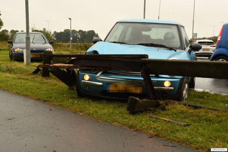 Bestuurster raakt macht over het stuur kwijt en komt tegen houten rail aan