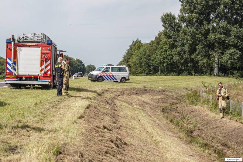 Brandweer bevrijd paard uit moeras langs N34