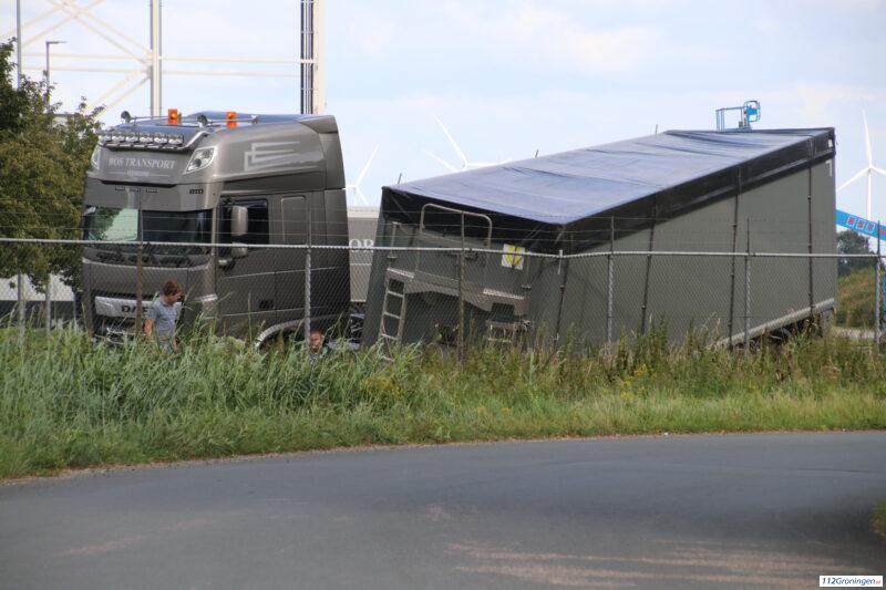 Op het terrein van ‘Kikkoman’ in Sappemeer is zaterdagmiddag een vrachtwagen zijn trailer ‘verloren’. Het