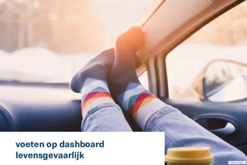 De politie ziet het de laatste tijd steeds vaker dat bijrijders hun voeten op het