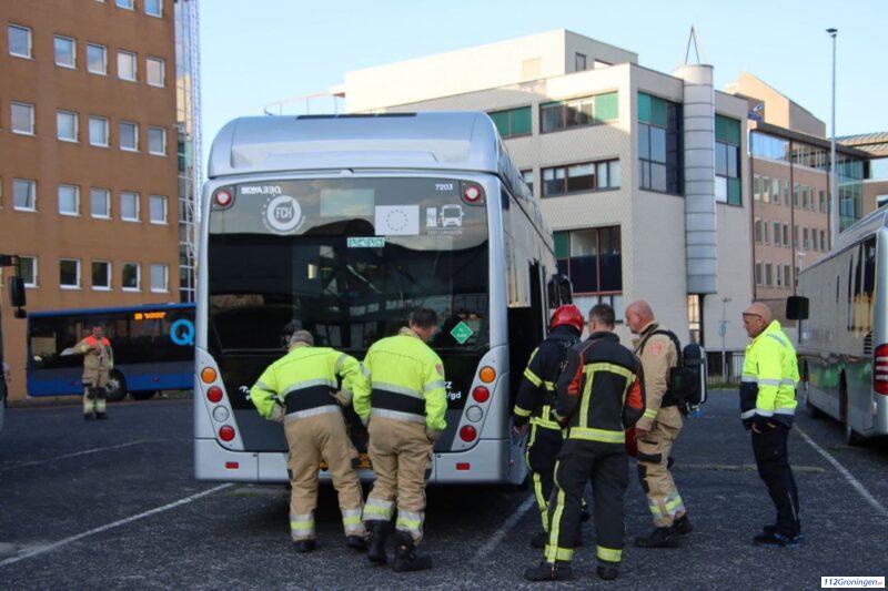 De Groninger brandweer moest dinsdagavond in actie komen vanwege problemen met een waterstofbus die op