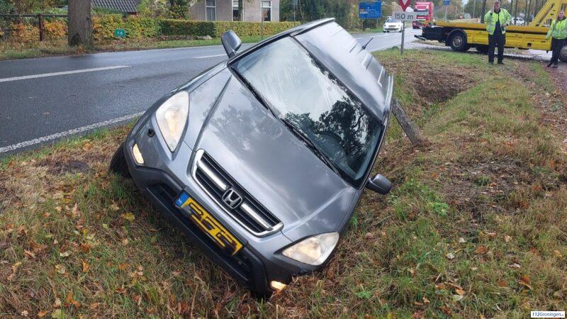 Auto belandt in sloot na eenzijdig ongeval op Oosterveldweg in Farmsum
