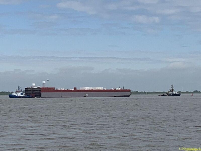 Groot sleeptransport voor nieuw cruiseschip passeert Delfzijl