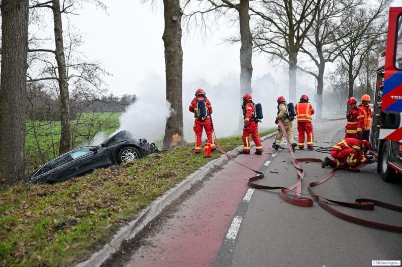 Auto raakt van de weg op de N983 nabij Aduard