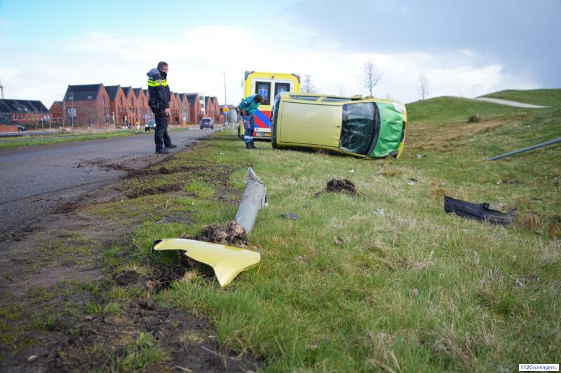 Auto belandt op de zijkant Vossenburglaan Meerstad