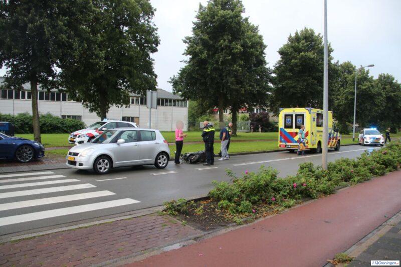 Scooterrijder gaat onderuit bij plotselinge rem-actie in Groningen