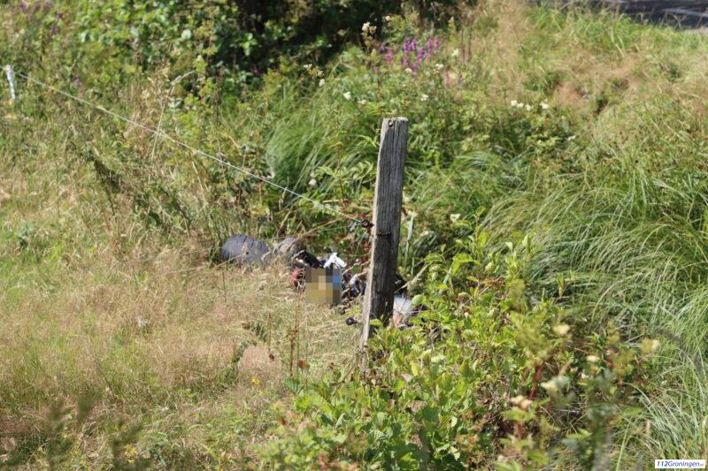Motorrijder gaat onderuit en belandt in sloot langs Delleweg nabij Stedum