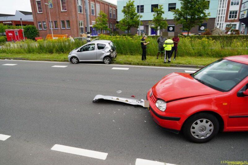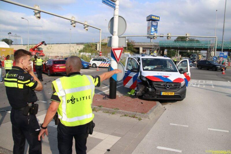 Politieauto komt onderweg naar spoedmelding in botsing met personenauto in Groningen (Video)