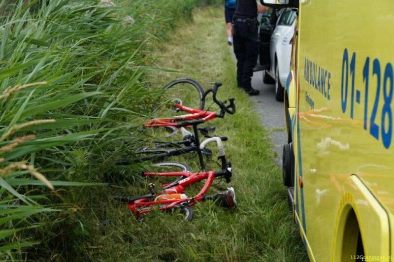 Bij de sluis op het Jaagpad in Onderdendam zijn dinsdagmorgen drie wielrenners ten val gekomen,