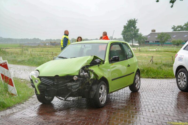Kop-staart aanrijding tussen twee auto’s in Groningen