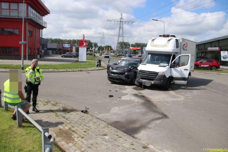 Op de Odenseweg in de stad Groningen zijn dinsdagmiddag een bestelwagen en een personenauto met
