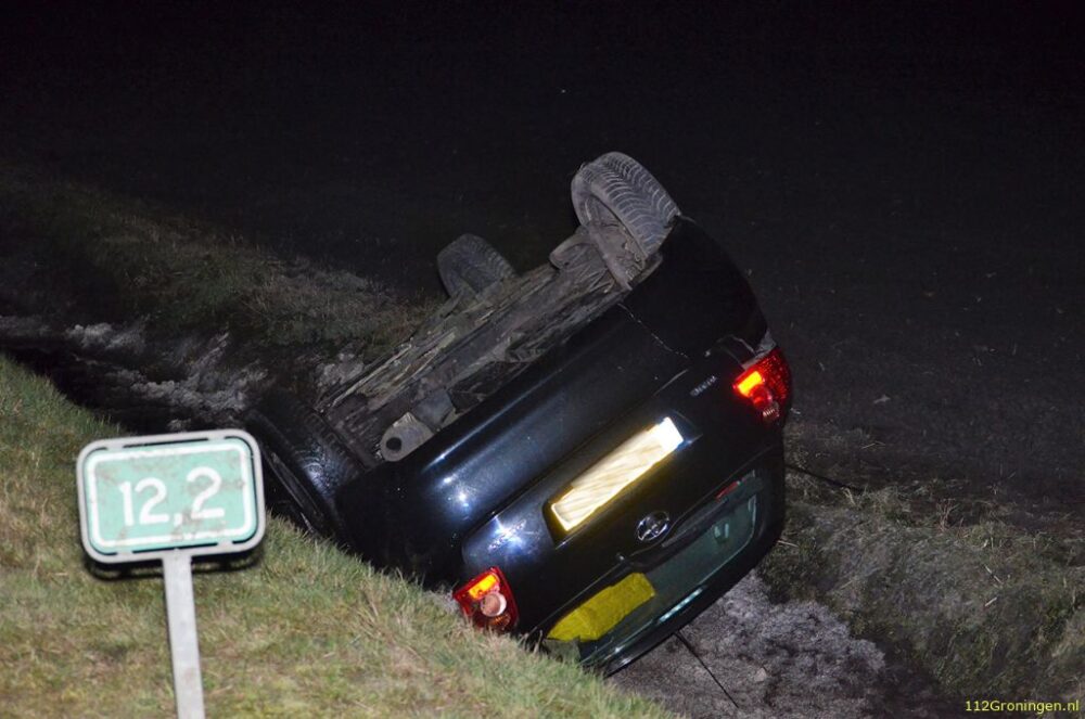 Auto op de kop in de sloot bij ongeluk in Valthermond