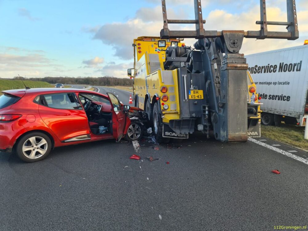 Bergingsvoertuig van Poort Hoogkerk aangereden op de N381