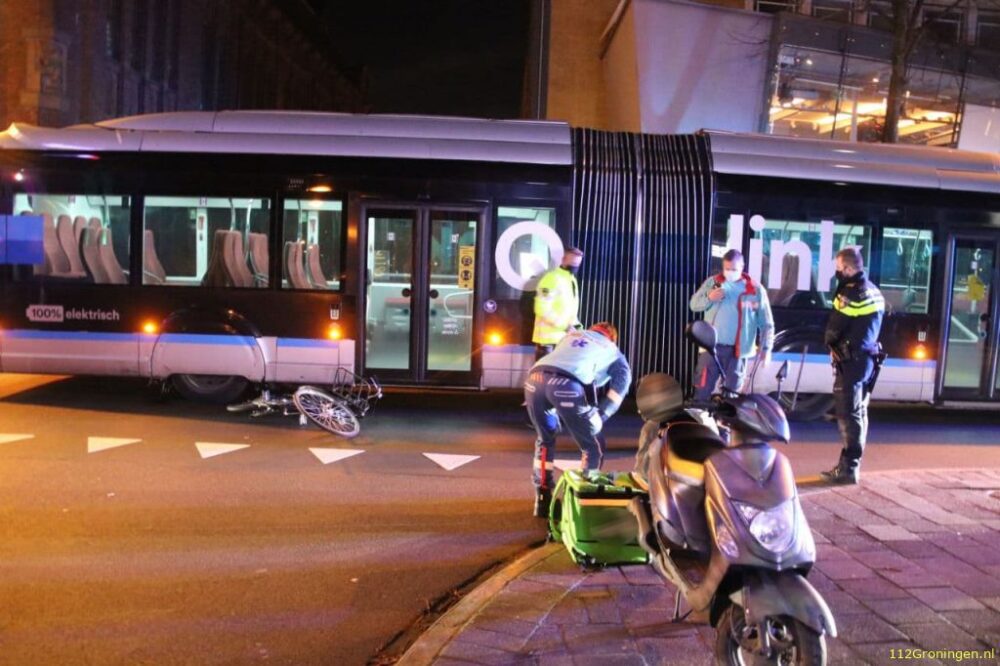 Fietser gewond na aanrijding met stadsbus in Groninger binnenstad