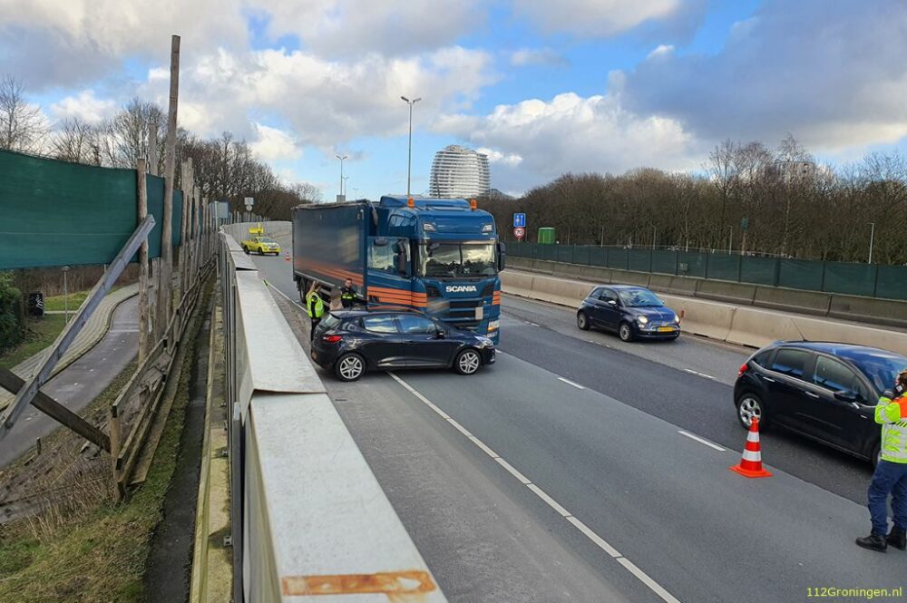 Ongeval tussen vrachtwagen en auto op N7 bij Groningen