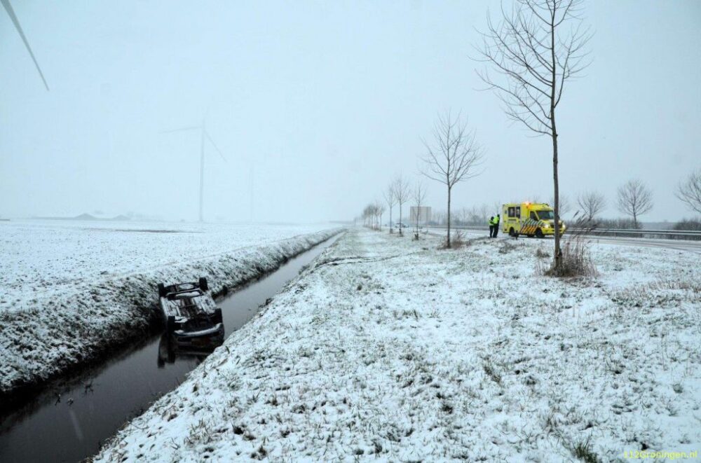 Een automobilist uit Veendam is zondagmorgen door de gladheid van de N33 geraakt en op