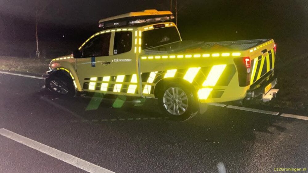 Auto botst tegen voertuig van Rijkswaterstaat op N33 bij Veendam
