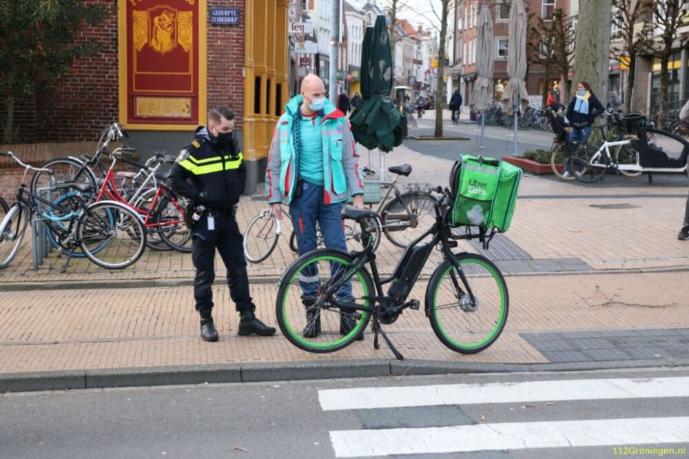 Op het Gedempte Zuiderdiep in Groningen is donderdagmiddag een maaltijdbezorger gewond geraakt, toen deze op