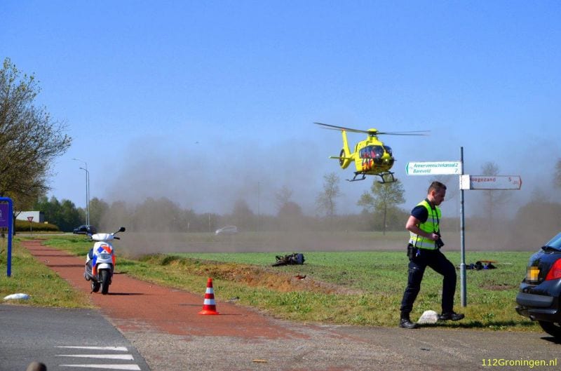 Een traumahelikopter landde vanmiddag rond 12.00 uur op een weiland langs de Terheijlsterweg in Nieuw-Roden