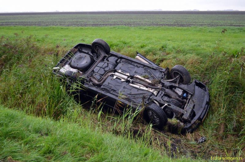 Weer een auto naast de A7 bij Scheemda