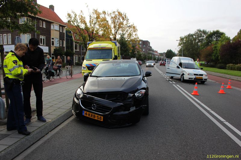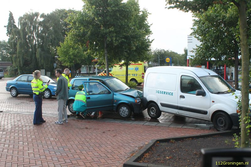 Een 34-jarige autobestuurster uit Leek raakte donderdagmiddag gewond bij een aanrijding op de George Wilhelmlaan.