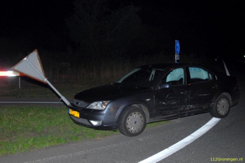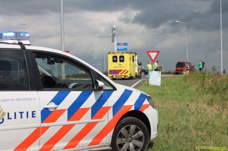 Onderaan de afrit van de A7 bij Boerakker zijn vanavond door een voorrangsfout twee auto's