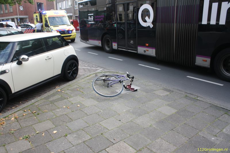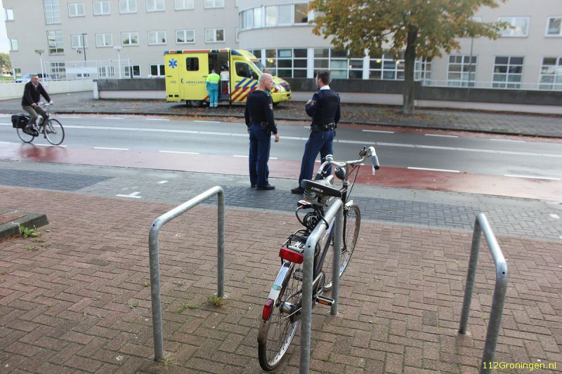 Bij een ongeluk op het Overwinningsplein in Groningen is vrijdagmiddag een fietser gewond geraakt.