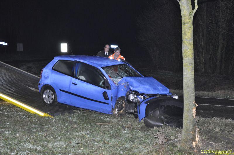 Maandagmorgen rond 07.00 uur is er een auto tegen een boom gereden op de N999.