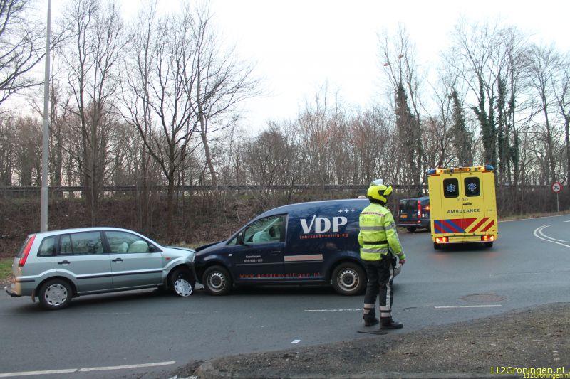 Bij een ongeval op de kruising van de Noorderstationstraat met de Nieuwe Ebbingestraat is dinsdagochtend