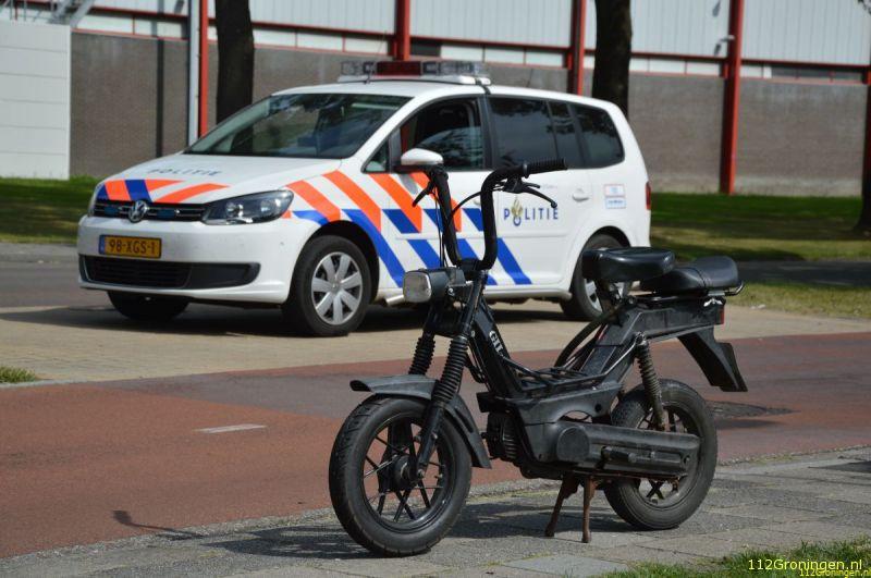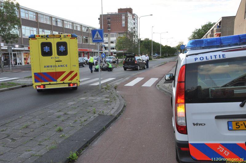 Op de Nijenoertweg/Lindensteinlaan in Leek is vrijdagmiddag een snorscooter aangereden op de kruising met de