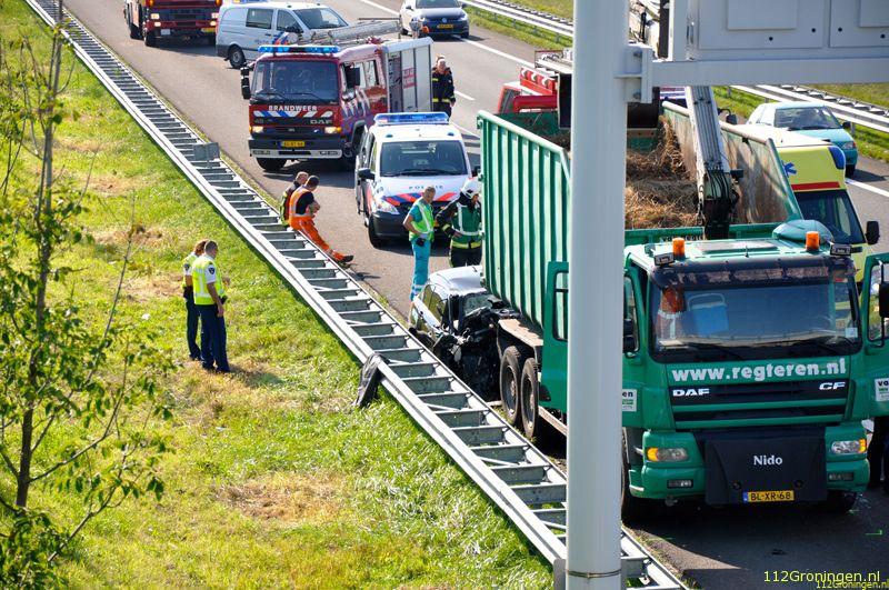 Zondag om 18:25 uur raakte op de A28 tussen de Punt en Haren in de