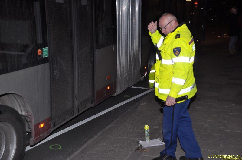 Een 86-jarige vrouw uit Groningen liep ernstig beenletsel op nadat zij maandagavond onder een bus
