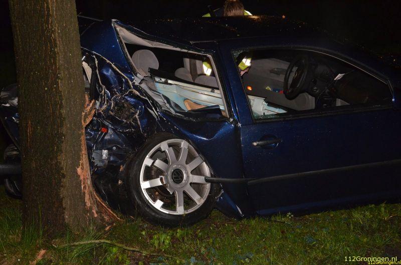 Donderdagnacht zijn twee inzittenden van een personenauto gewond geraakt bij een ongeval. Hun auto botste