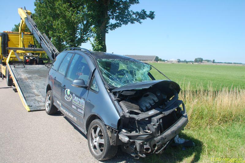 Dinsdagavond is veel schade ontstaan bij een frontale aanrijding op de Nittersweg bij Lauwerzijl. Bij