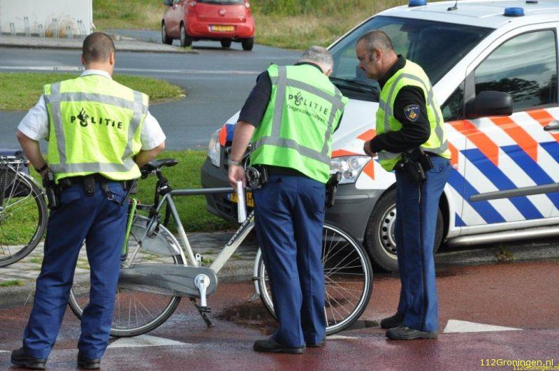 Een 55-jarige fietser uit Groningen is dinsdagavond op de Stationsweg in Groningen gewond geraakt bijeen