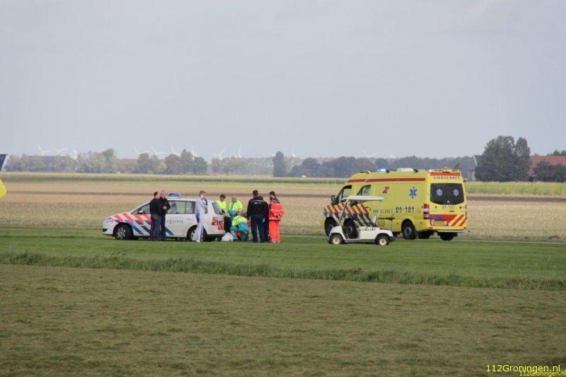 Bij het paracentrum op het vliegveld op Oostwold is zondagmiddag rond een uur een parachutist