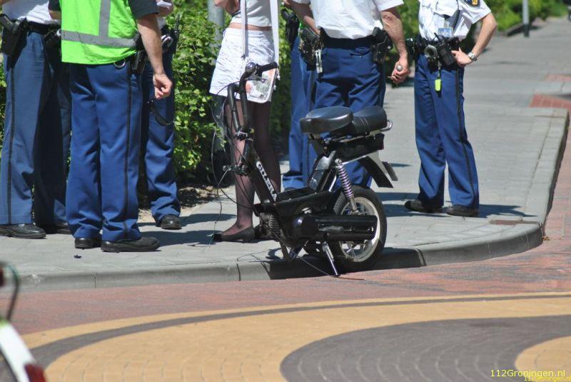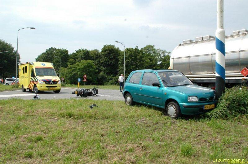 Op de Scharreweersterweg in Appingedam heeft donderdagmiddag een ongeluk plaatsgevonden tussen een brommer en een